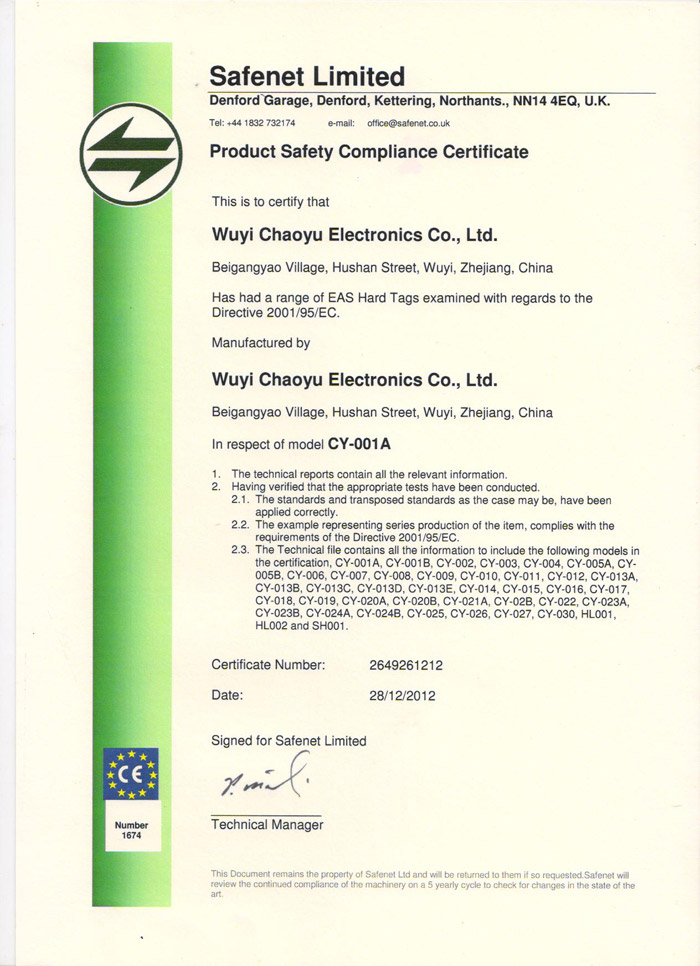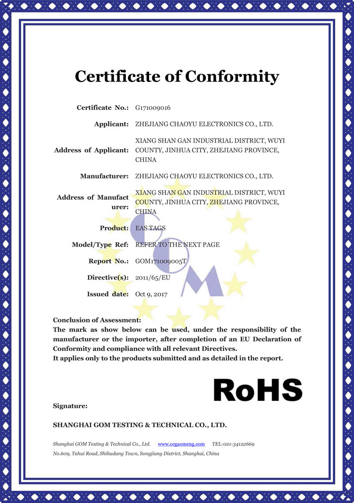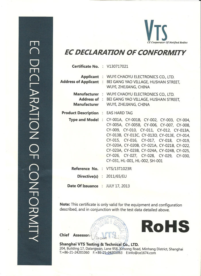 浙江超宇電子有限公司是一家獨立生產EAS防盜硬標簽的生產貿易型企業。經過多年的創業,在市場取得了良好經營業績,目前公司產品已覆蓋全國,遠銷亞洲、美洲、歐洲等地區,深受廣大用戶的好評。